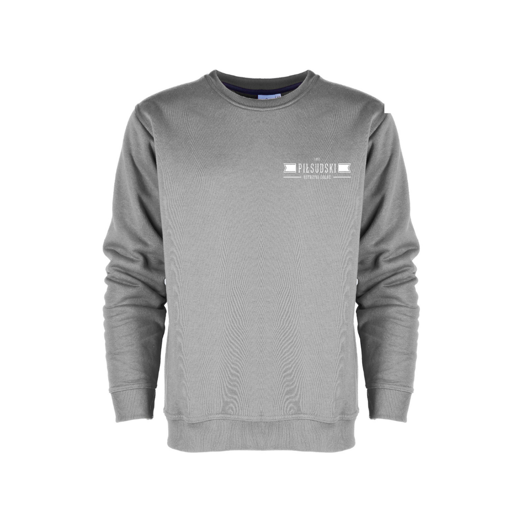 Bluza bez kaptura i kieszeni z logo szkoły.