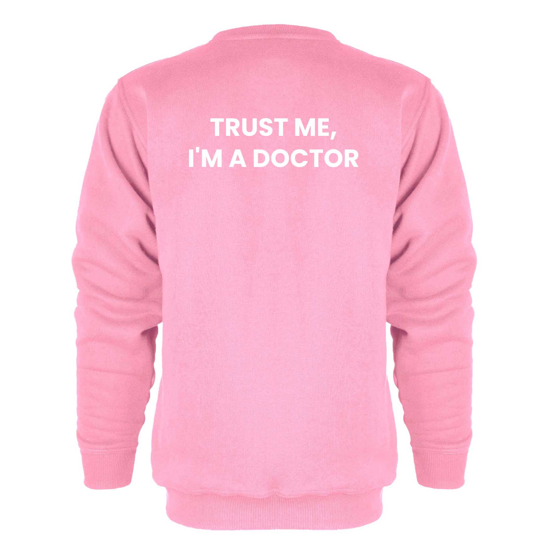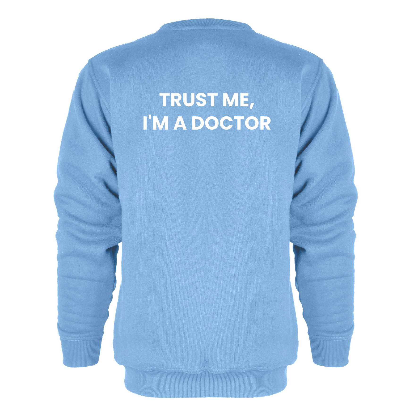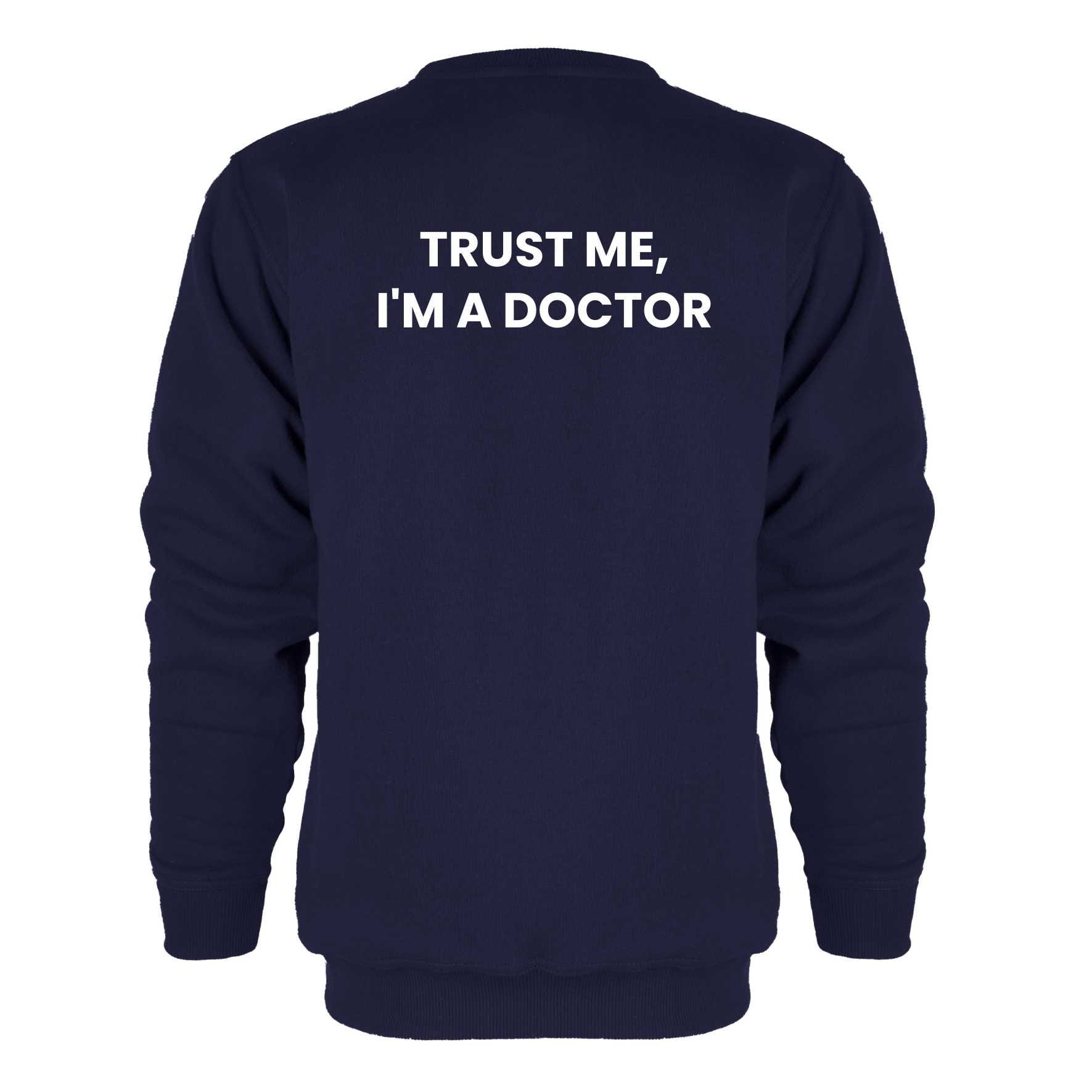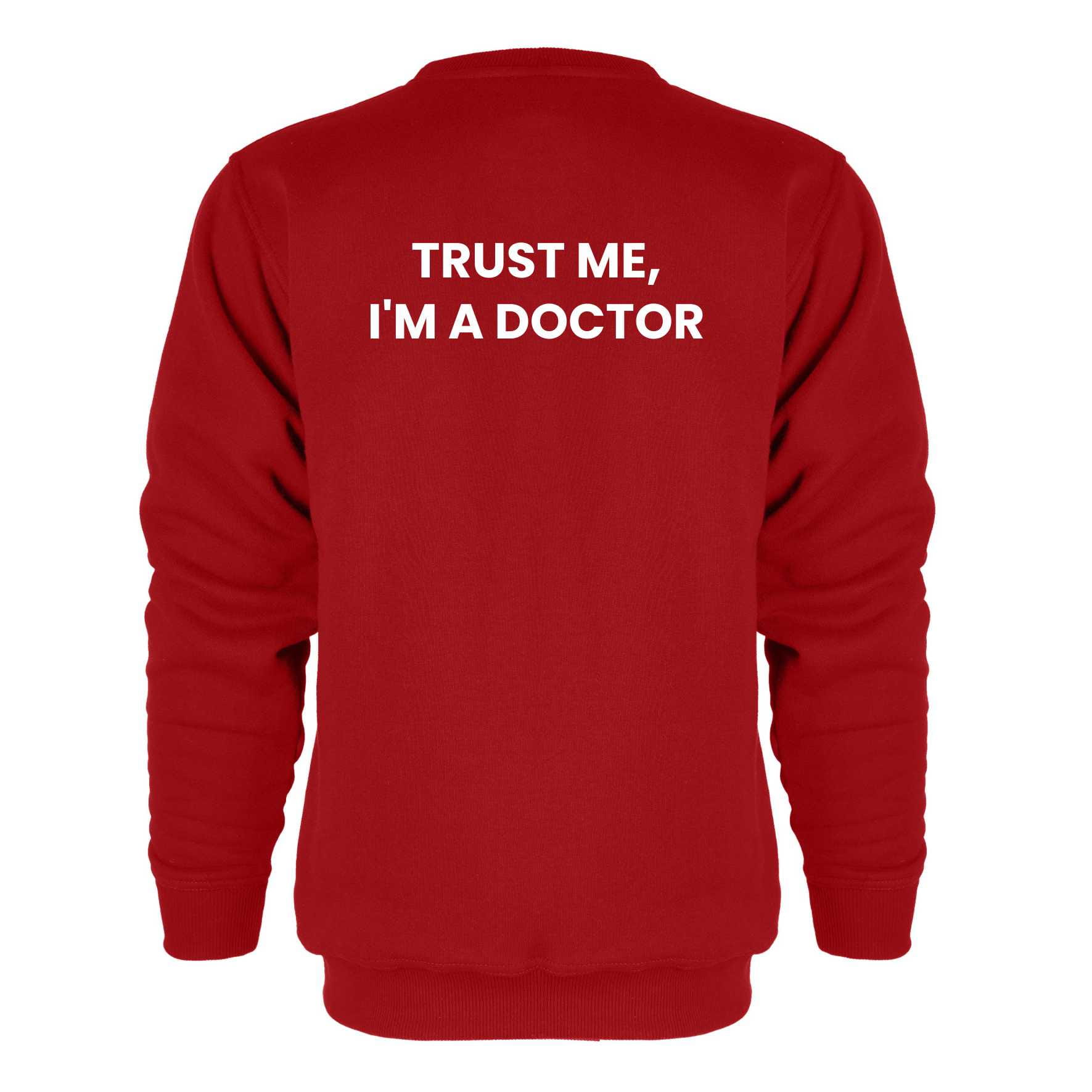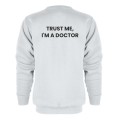 Bluza bez kaptura i kieszeni z haftowanym logo na lewej piersi i napisem "I'm a Doctor" na plecach.