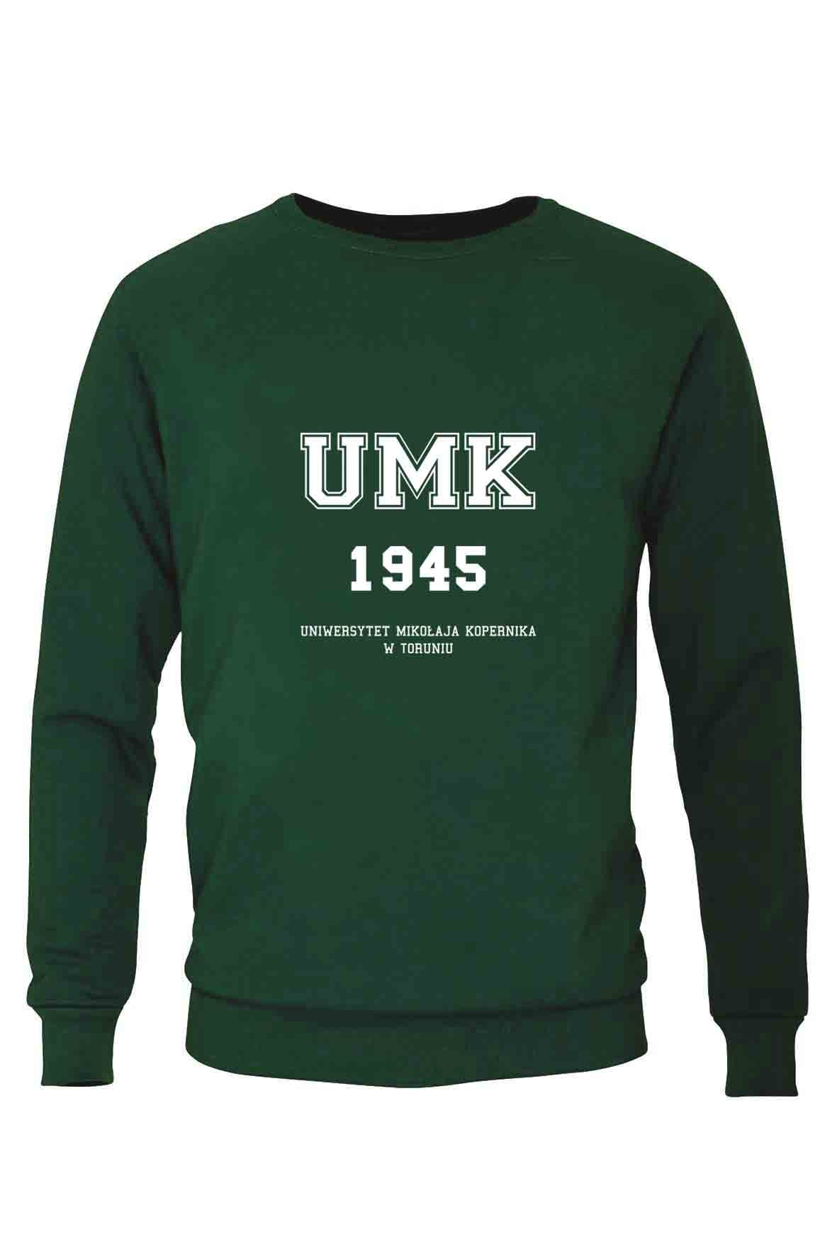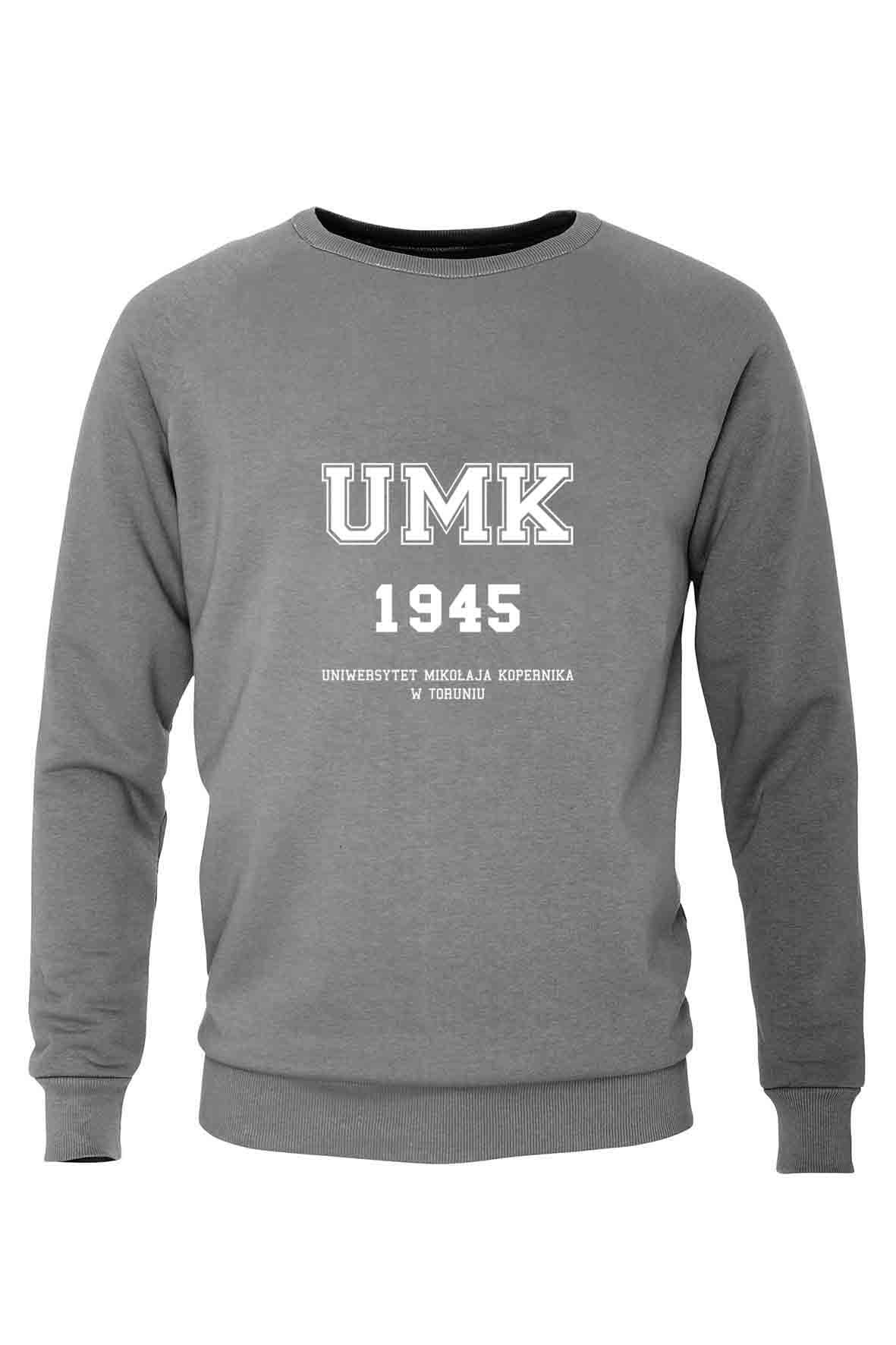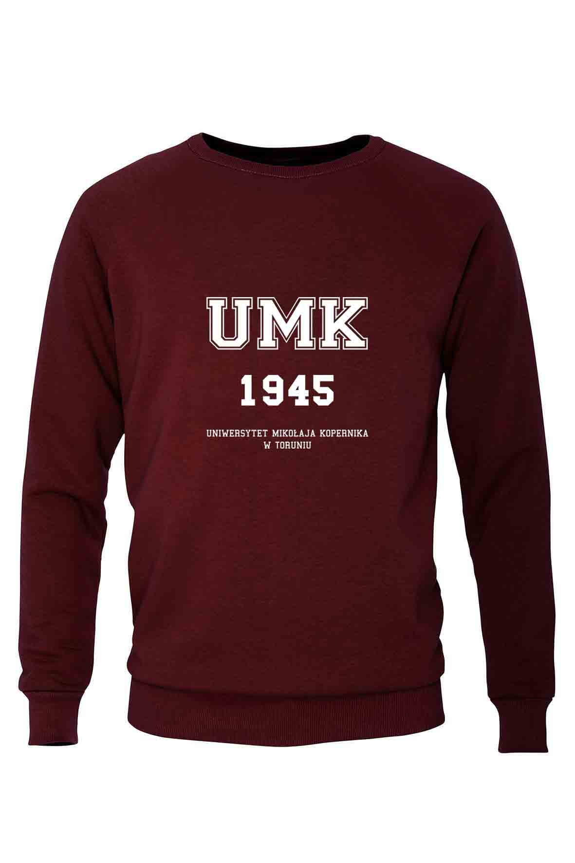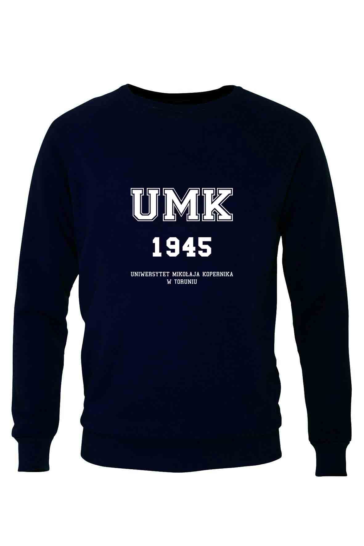 Bluza bez kaptura i bez kieszeni z haftowanym logo Uniwersytetu Mikołaja Kopernika w Toruniu.