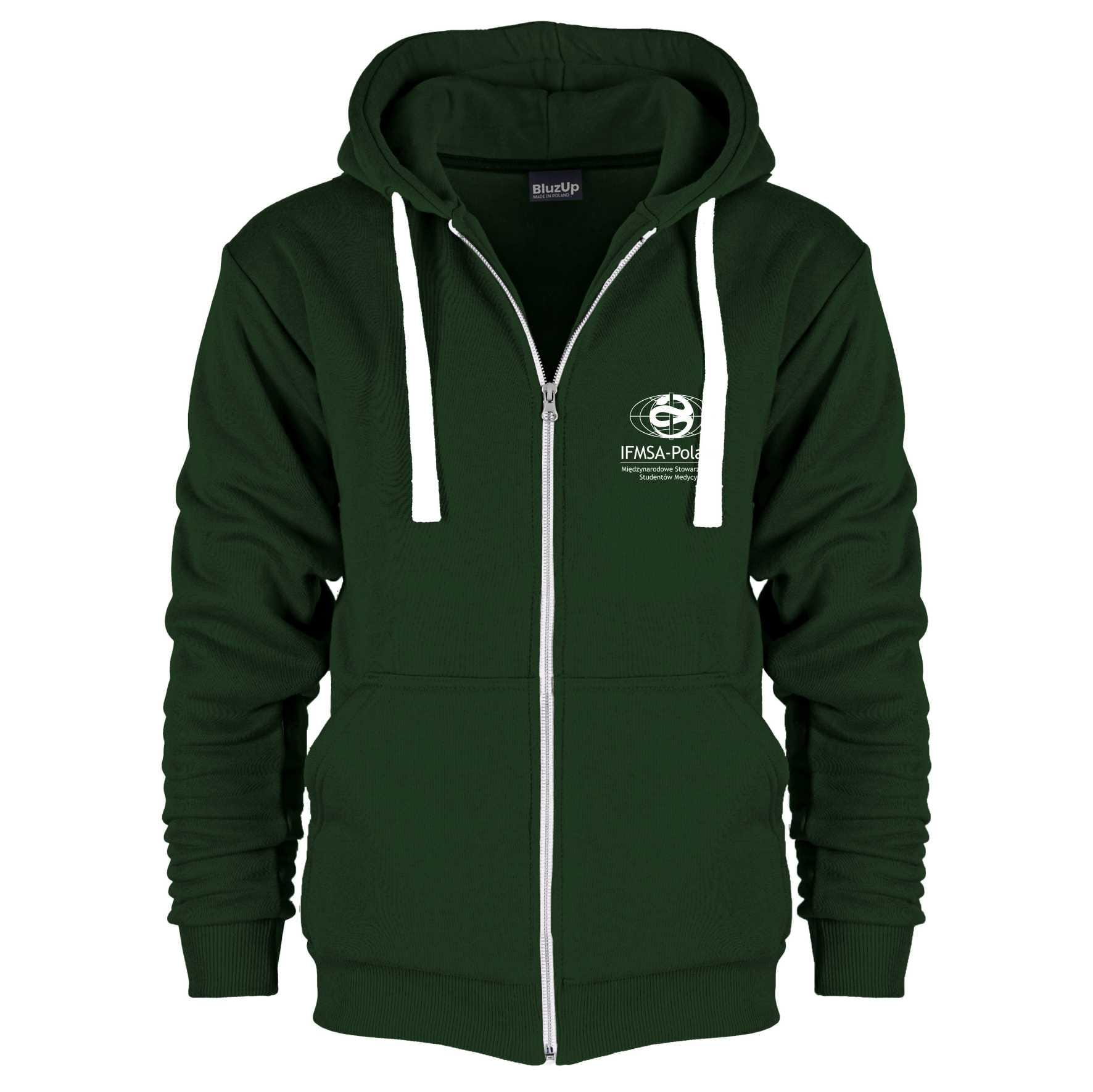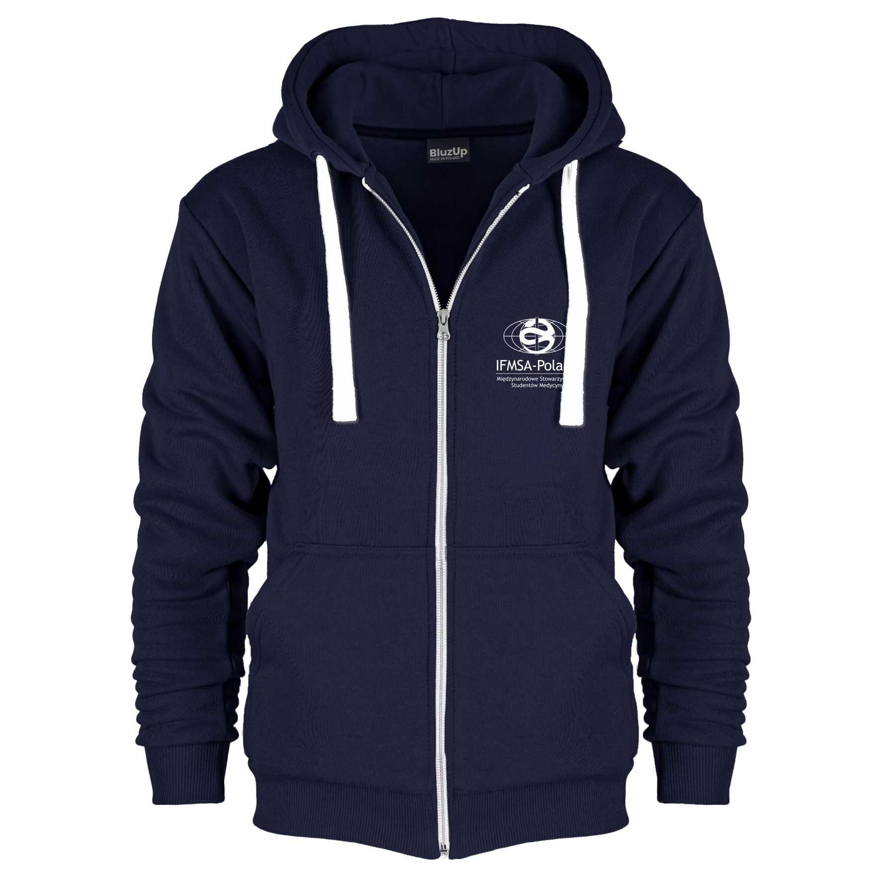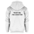 Bluza z kapturem i kieszeniami, rozpinana na suwak z haftowanym logo na lewej piersi i napisem "I'm a Doctor" na plecach.