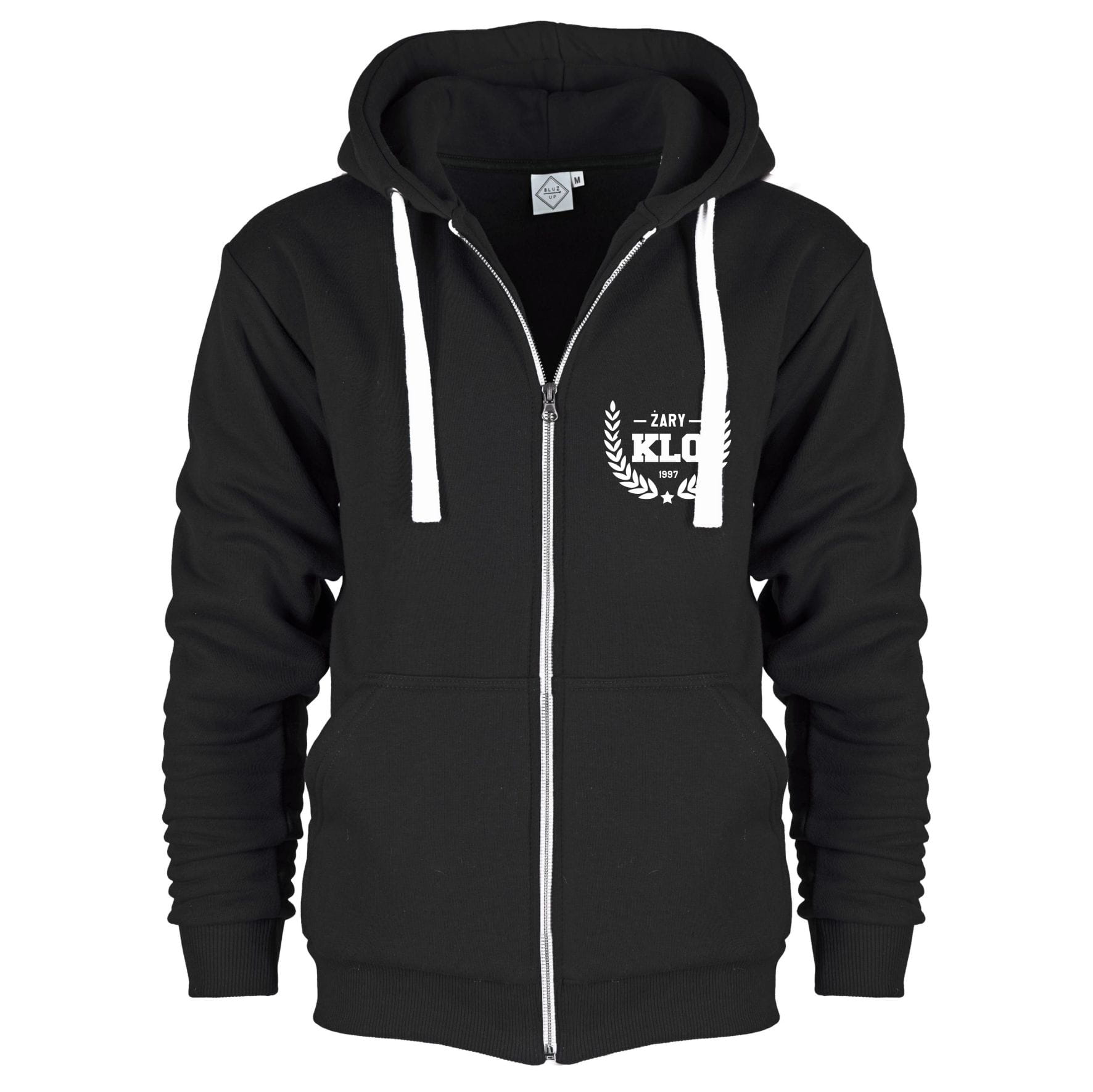 Rozpinana bluza z kapturem i kieszeniami. Cóż za wygoda. Logo szkoły wyhaftowane na piersi.