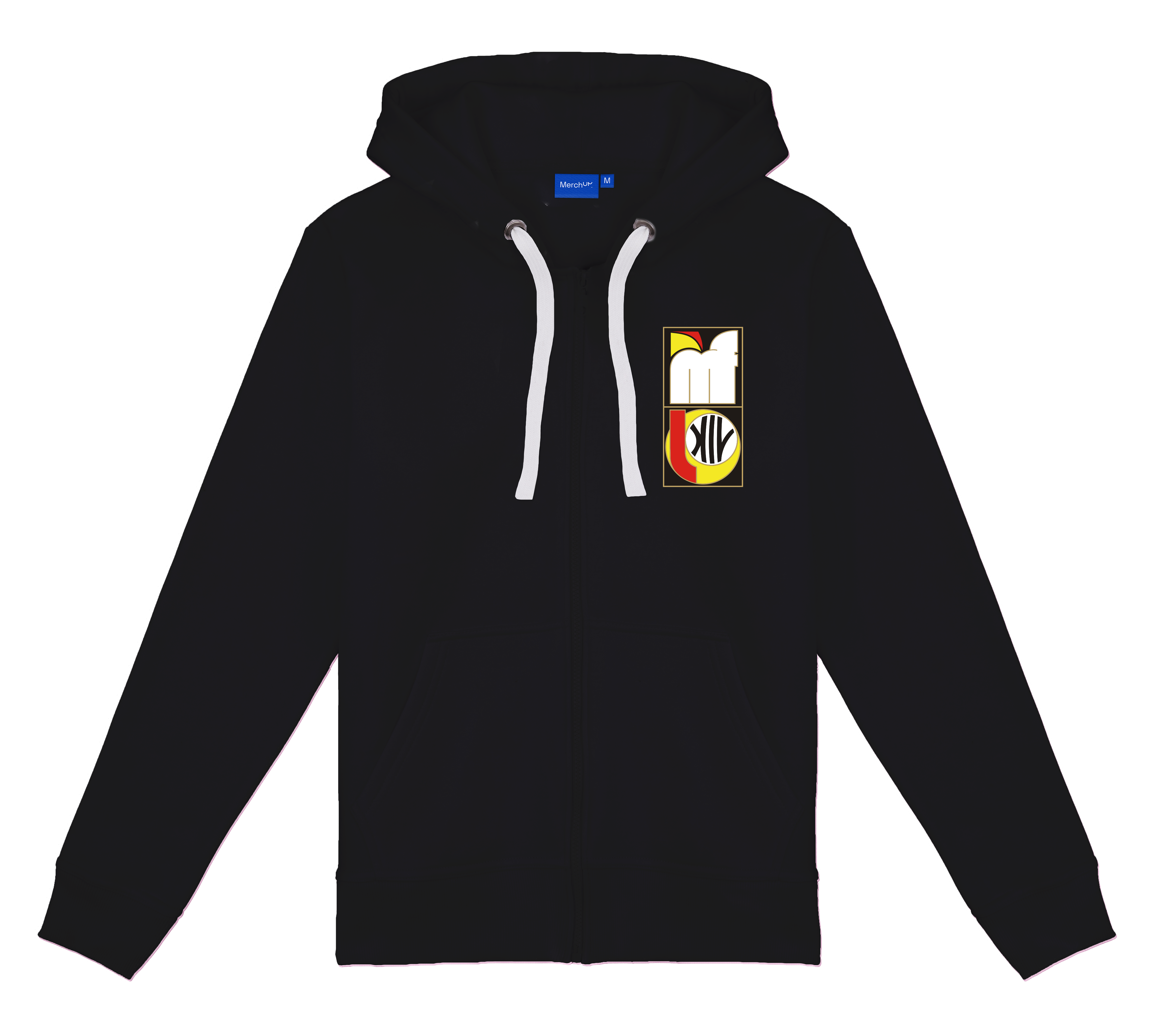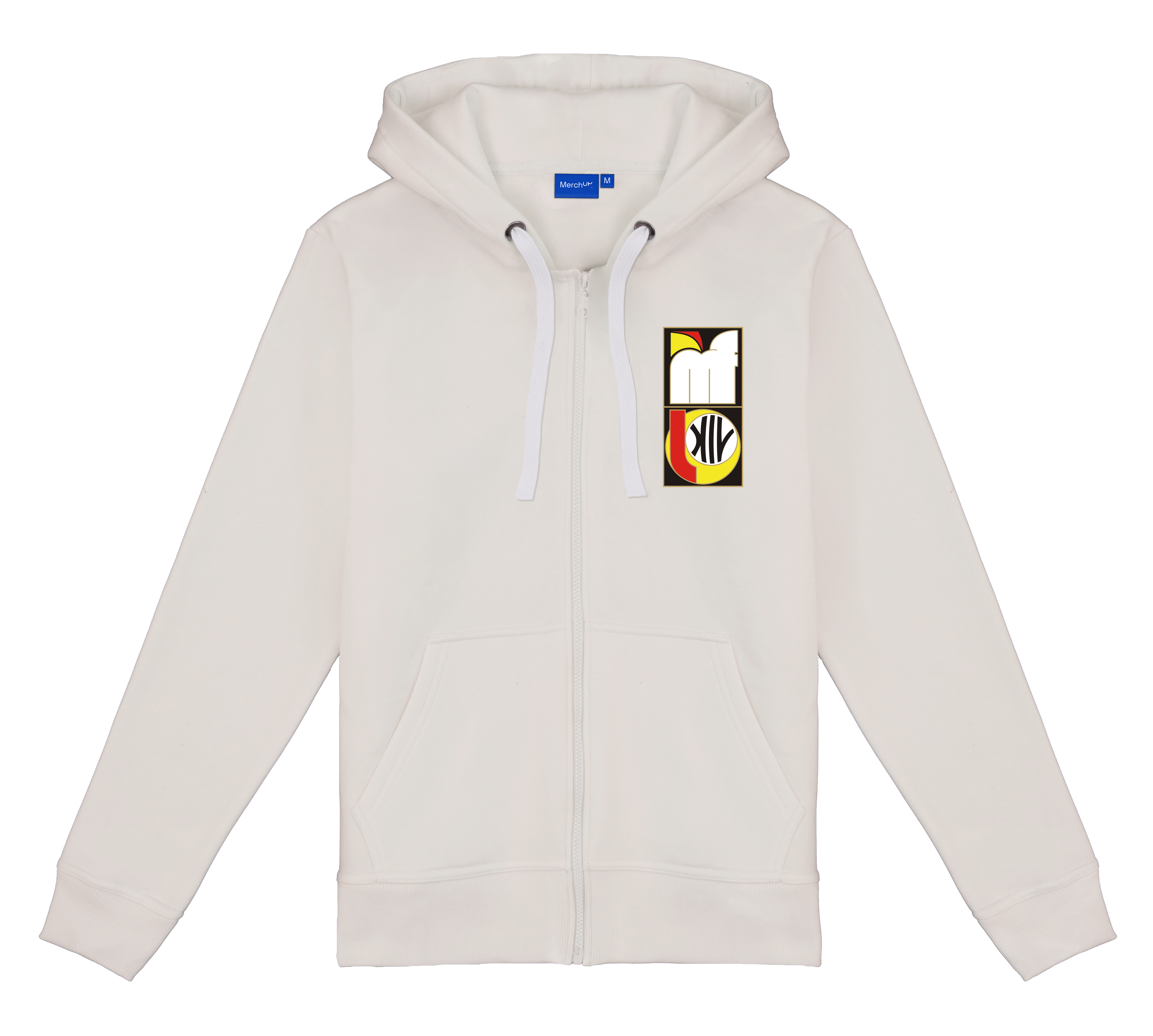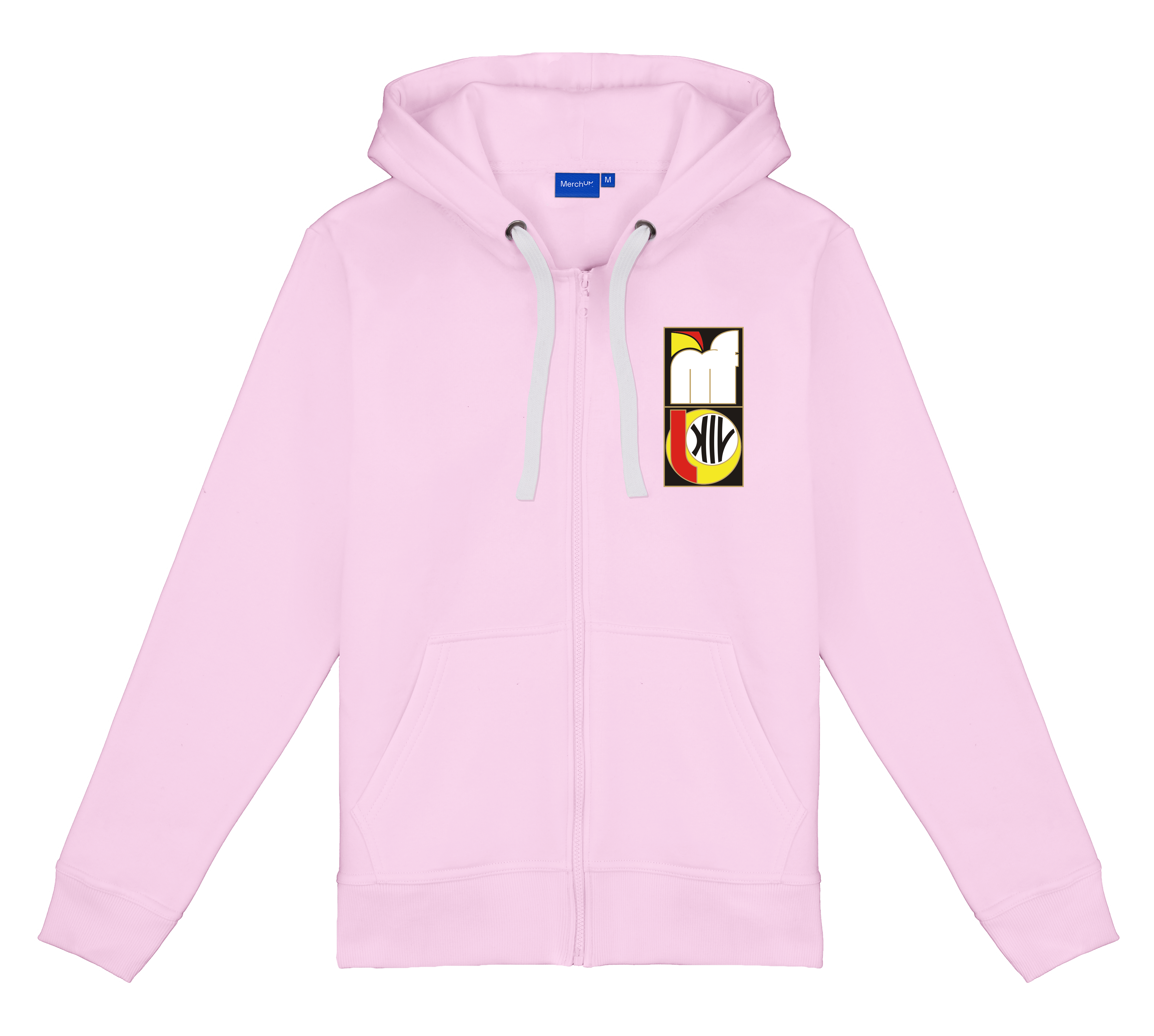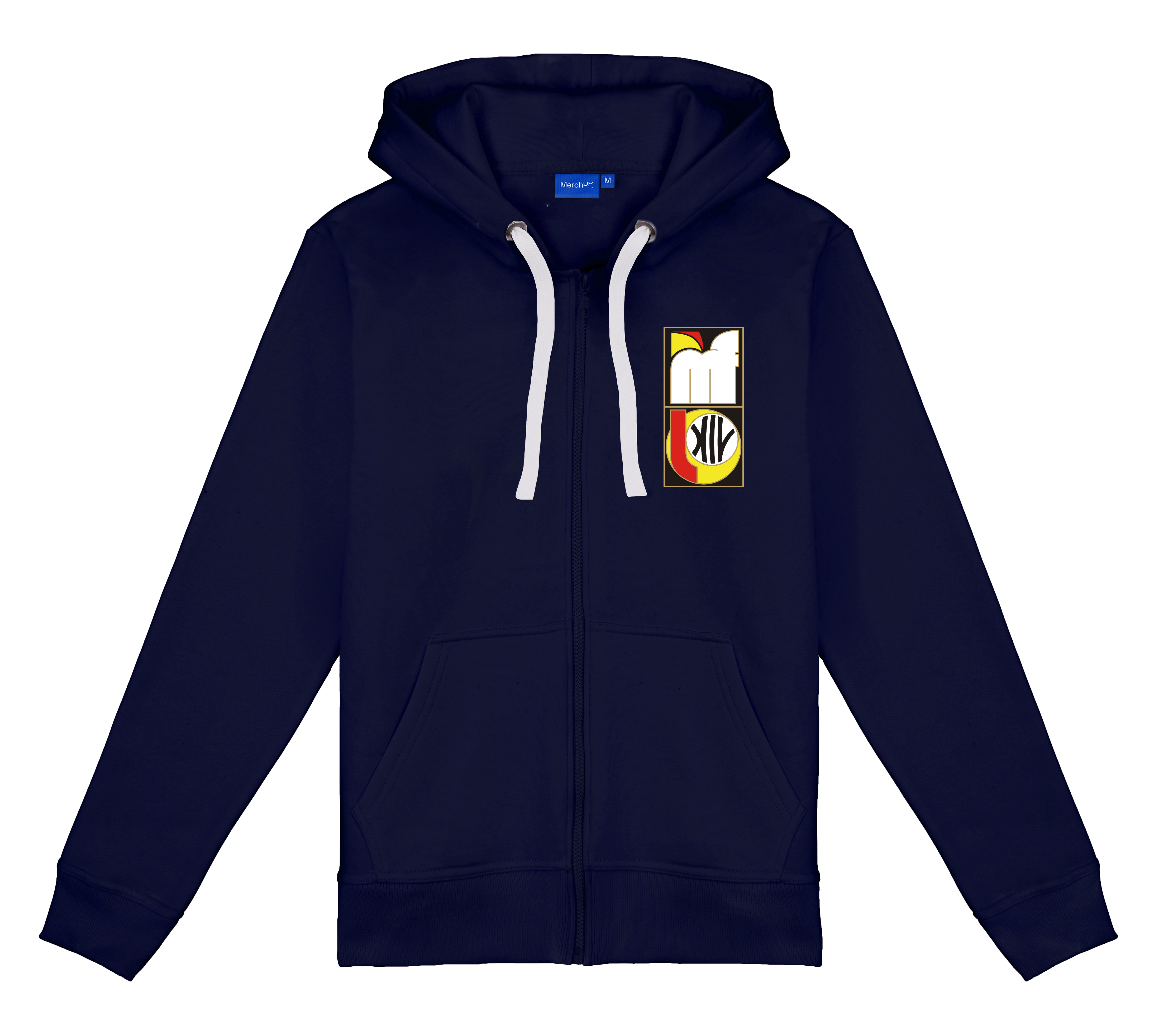 Rozpinana bluza z kapturem i kieszeniami oraz haftem na piersi. Cóż za wygoda.