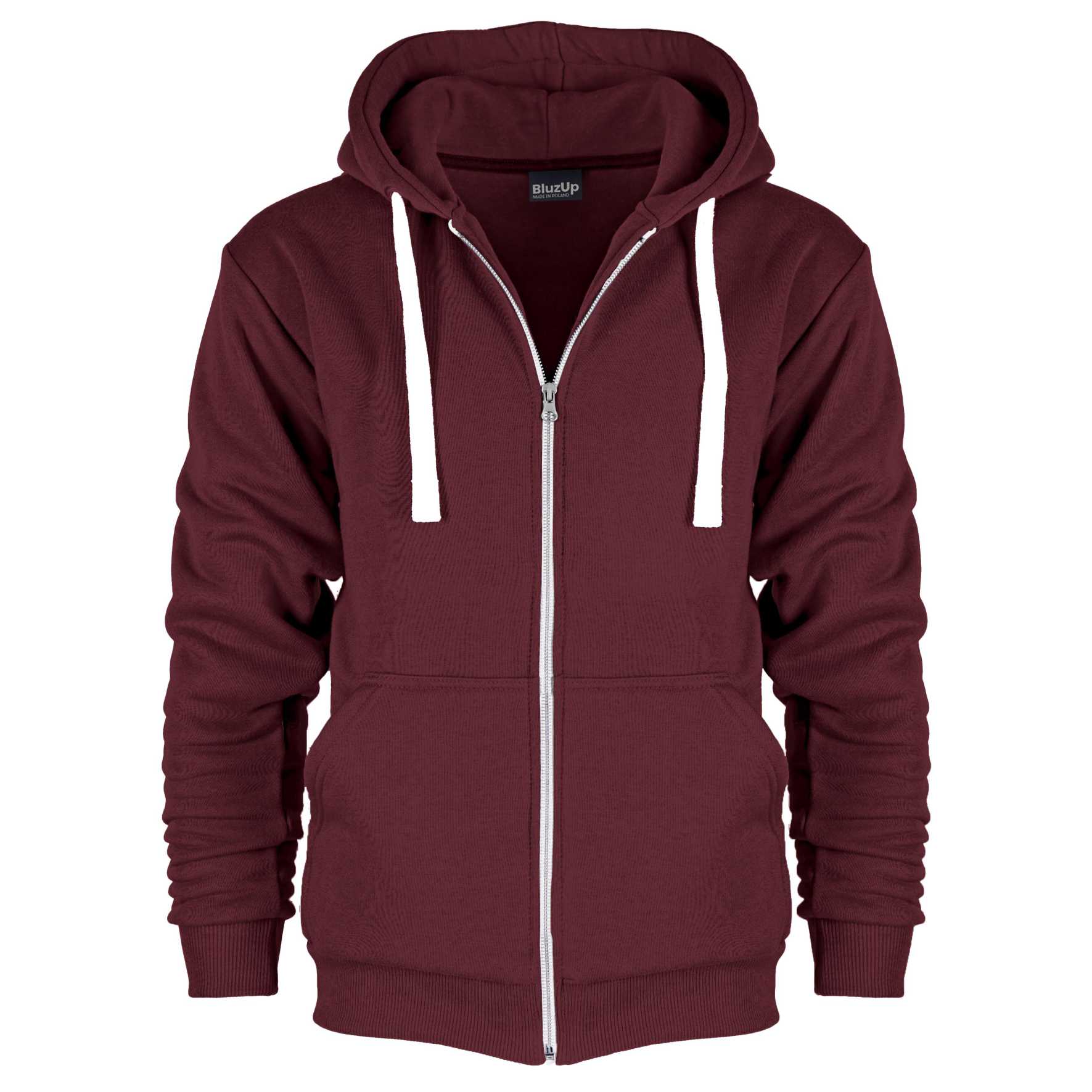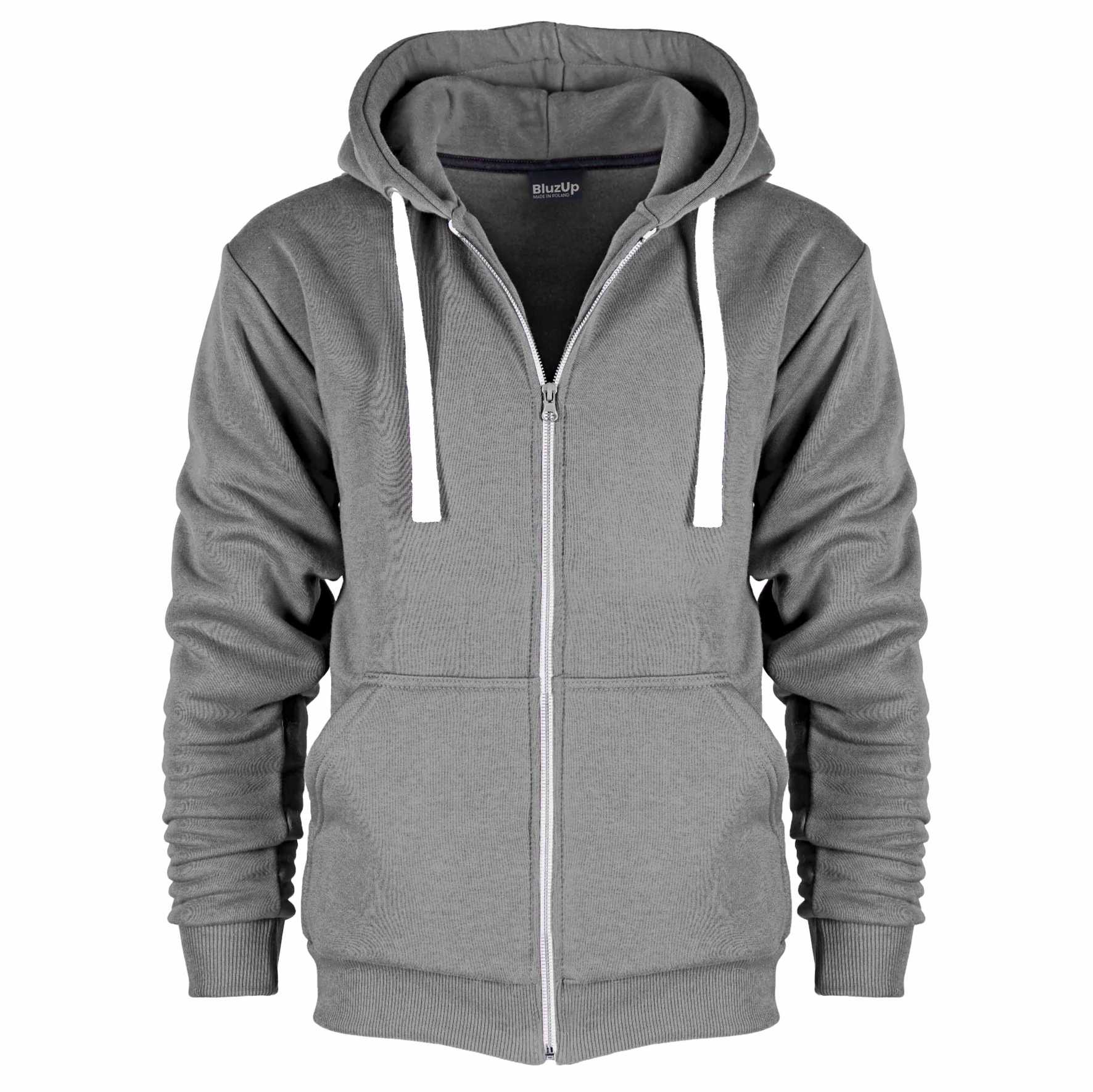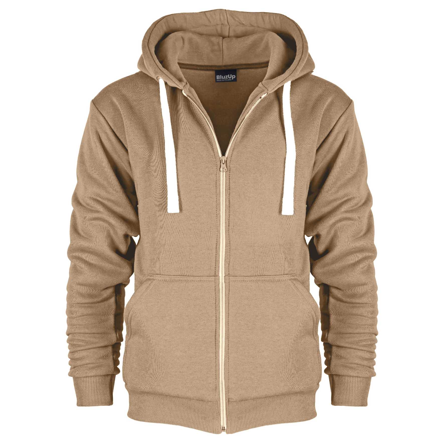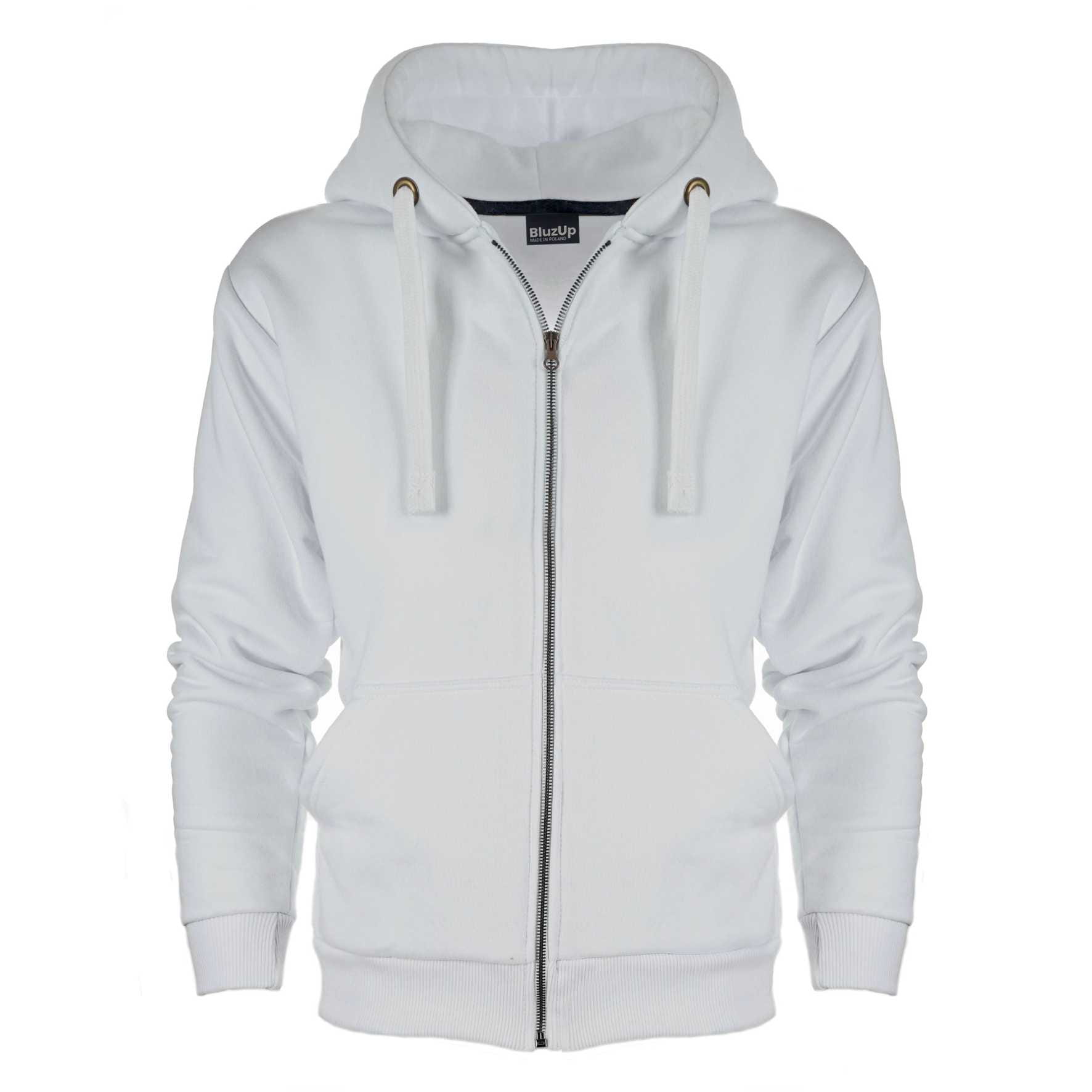 Bluza z kapturem i kieszeniami, rozpinana na suwak.