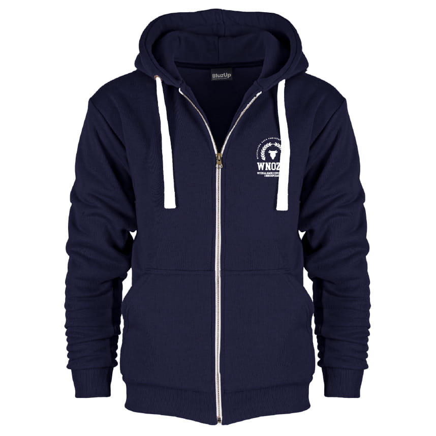 Rozpinana bluza z kapturem i kieszeniami. Cóż za wygoda. Logo Uczelni wyhaftowane na piersi.