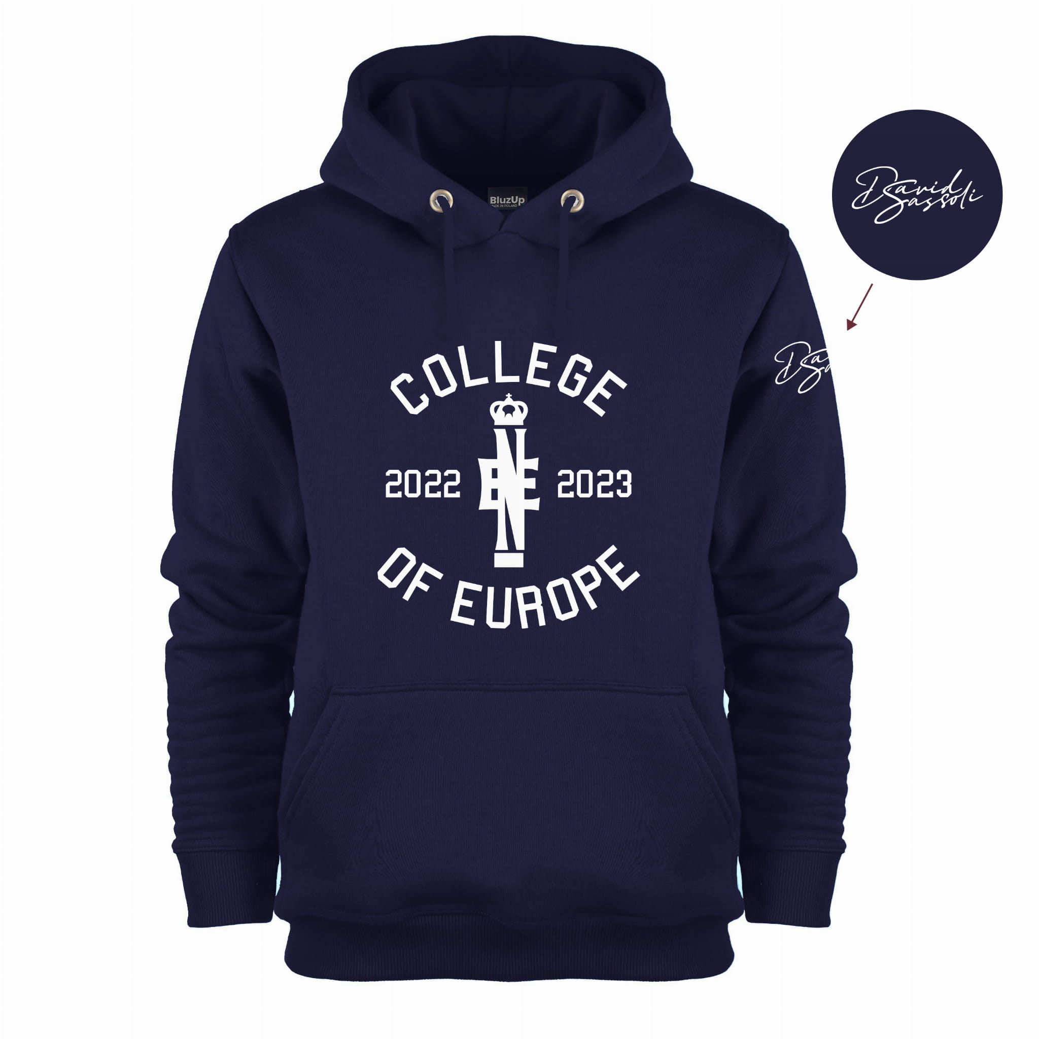Hoodie with chest graphic (COE) and shoulder graphic (David Sassoli).